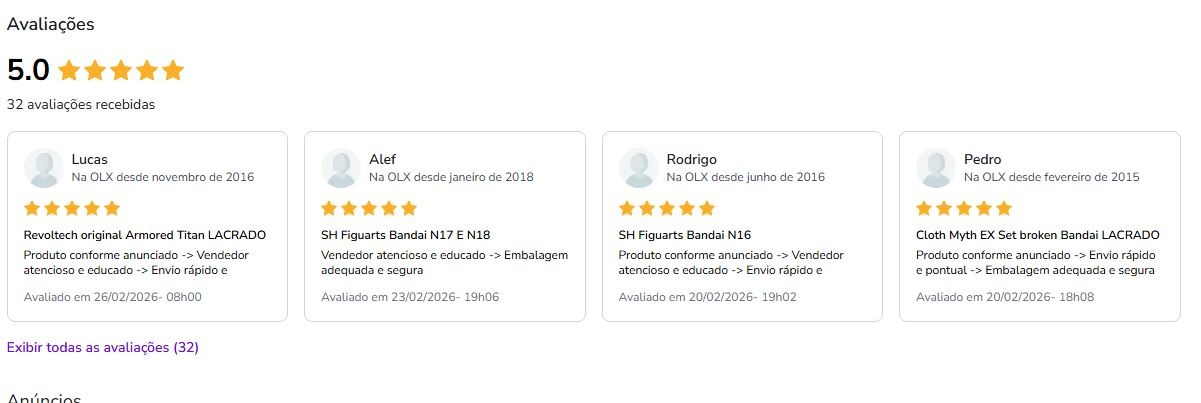 Temos avaliações 100% POSITIVA